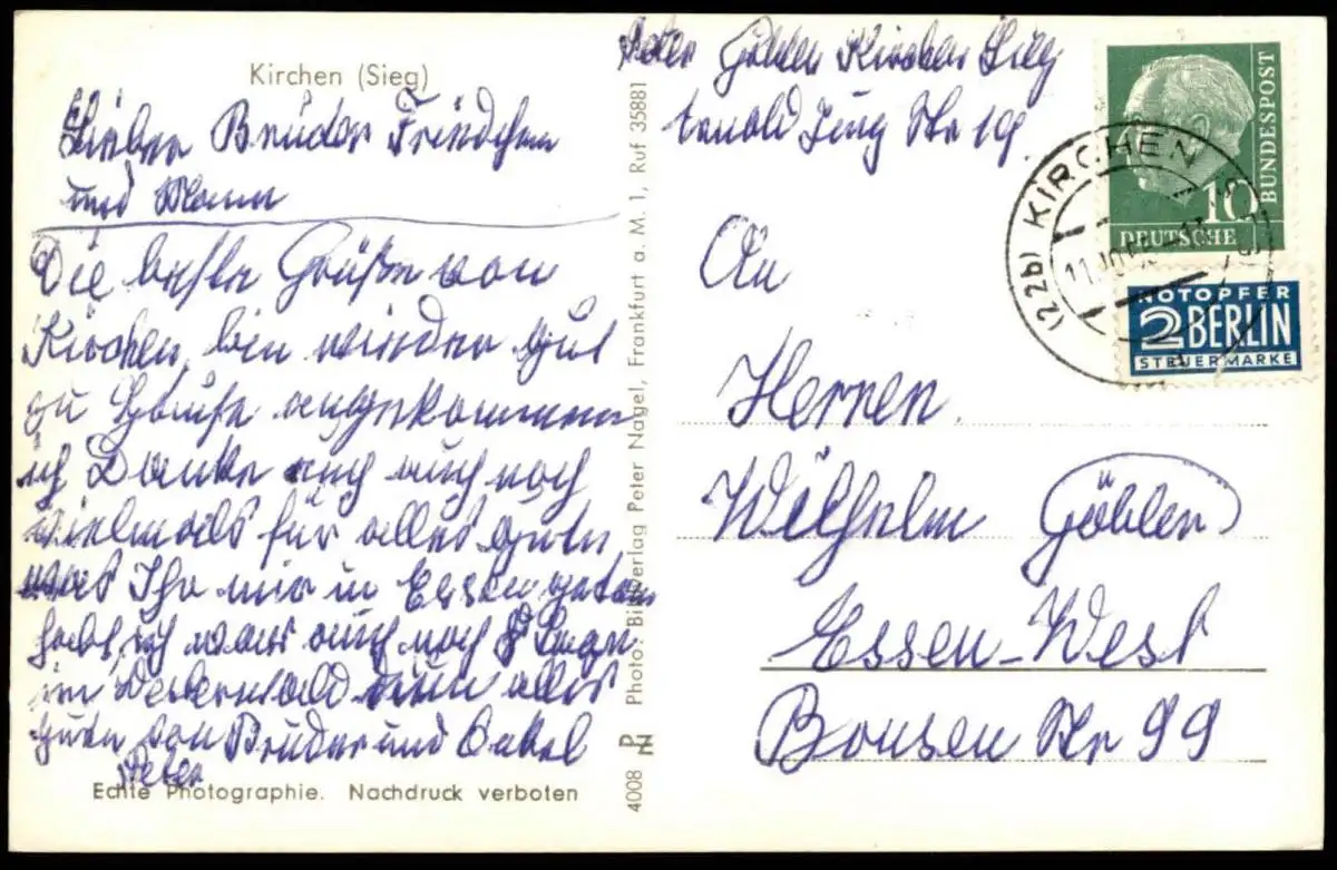Gelaufen: 11.10.1955 mit Stempel Kirchen nach Essen-WestErhaltung (s. Scan): gut, rechte obere Ecke minimal bestoßen / 915746