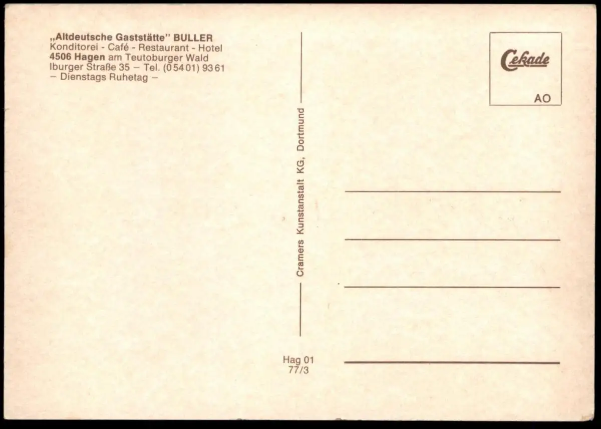 ÄLTERE POSTKARTE KONDITOREI GASTSTÄTTE PAUL BULLER HAGEN BEI OSNABRÜCK Mercedes Iburger Strasse Ansichtskarte AK cpa