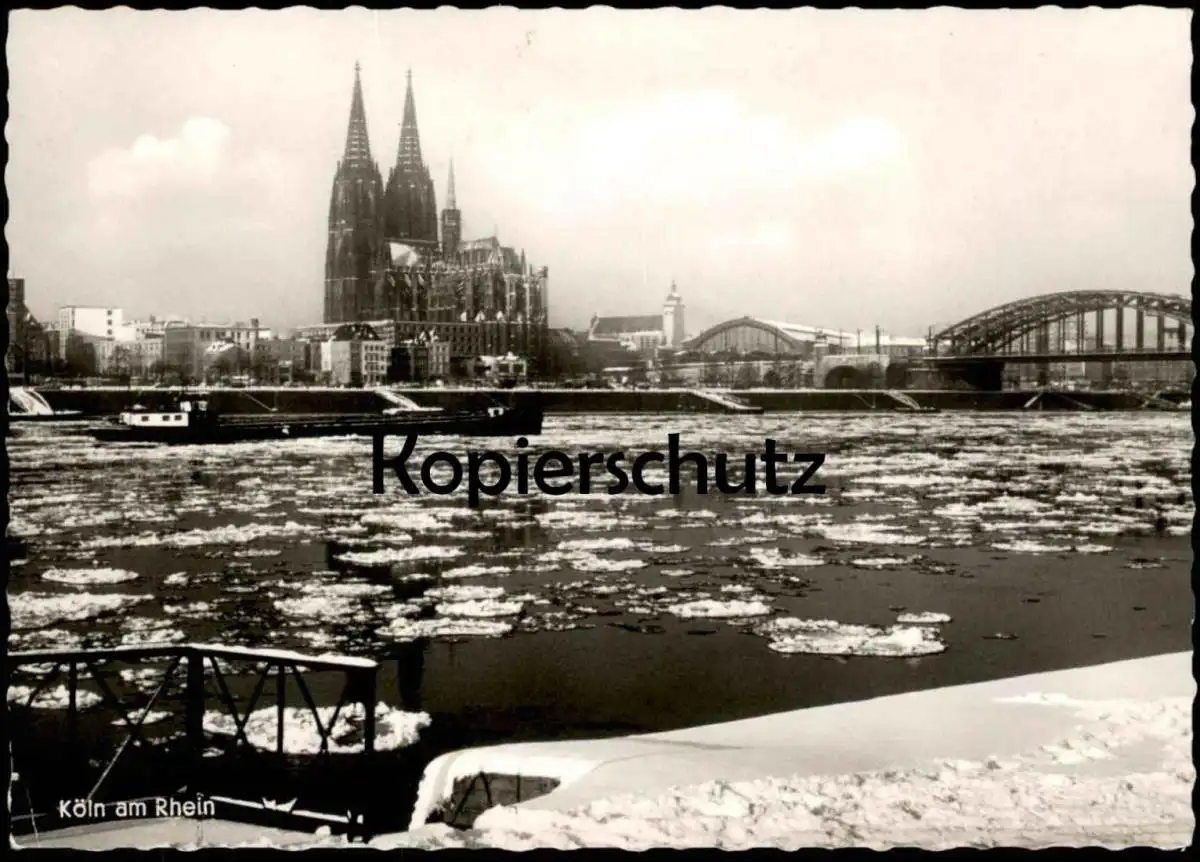 ÄLTERE POSTKARTE KÖLN EISGANG AUF DEM RHEIN WEIHNACHTEN HOHENZOLLERNBRÜCKE KÖLNER DOM PANORAMA FRACHTSCHIFF Schiff AK