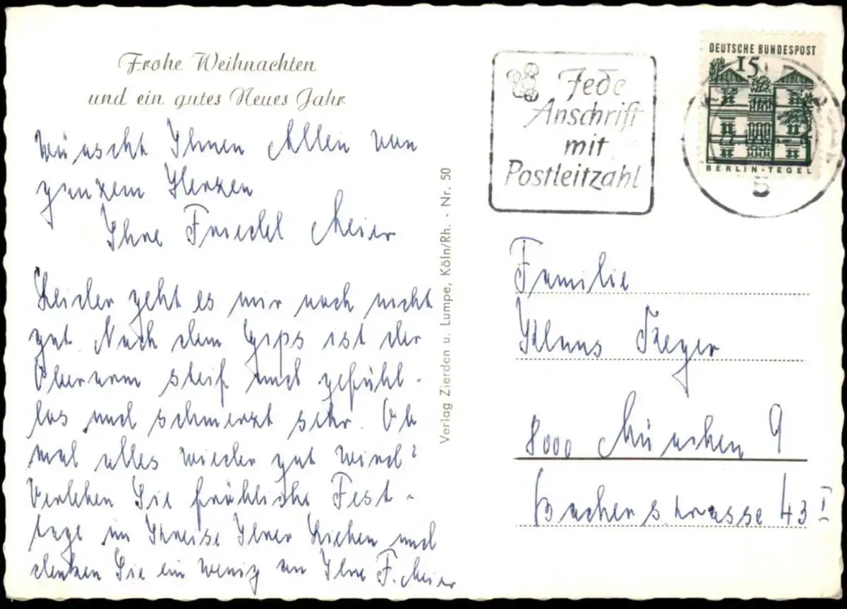 Gelaufen: 22.12.1966 mit Stempel Köln nach München