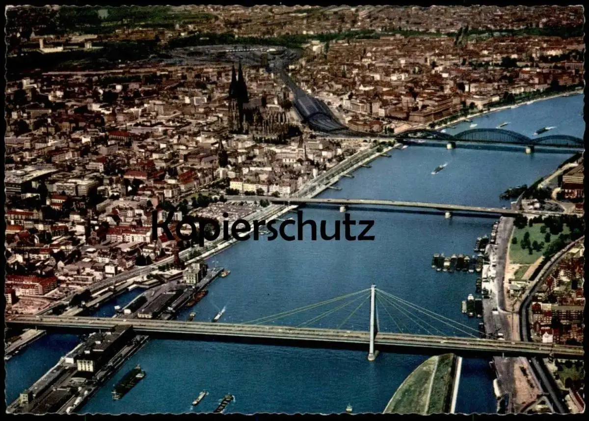 ÄLTERE POSTKARTE KÖLN LUFTBILD VOGELSCHAU Brücken Bahnhof Station Gare Dom Cöln Cologne Rhein Rhin Rijn Bridge Schiff