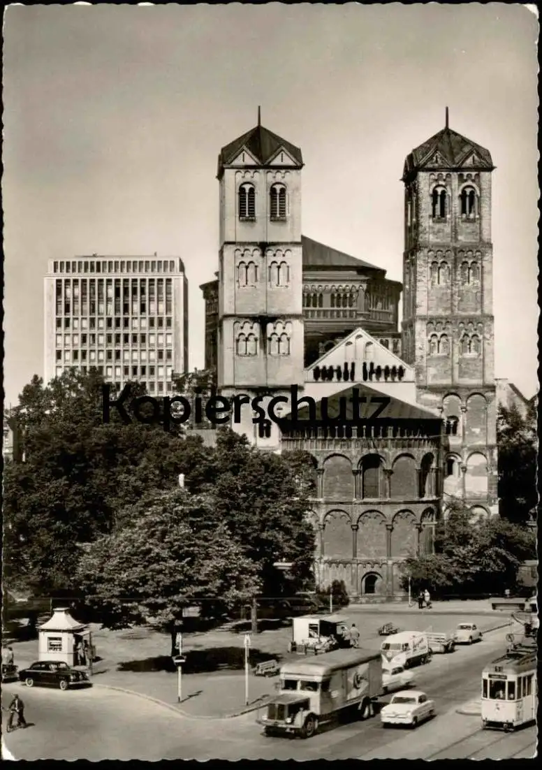 ÄLTERE POSTKARTE KÖLN ST. GEREON LKW BÜSSING 8000 STRASSENBAHN LINIE 5 VW BUS LANGNESE EISKREM OPEL Ansichtskarte AK cpa