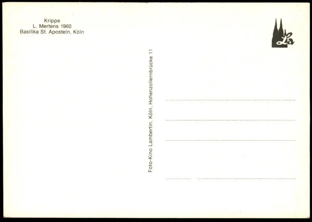 ÄLTERE POSTKARTE KRIPPE L. MERTENS 1960 WEIHNACHTEN HOLZKRIPPE KÖLN BASILIKA ST. APOSTELN