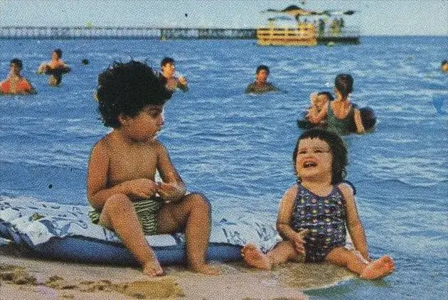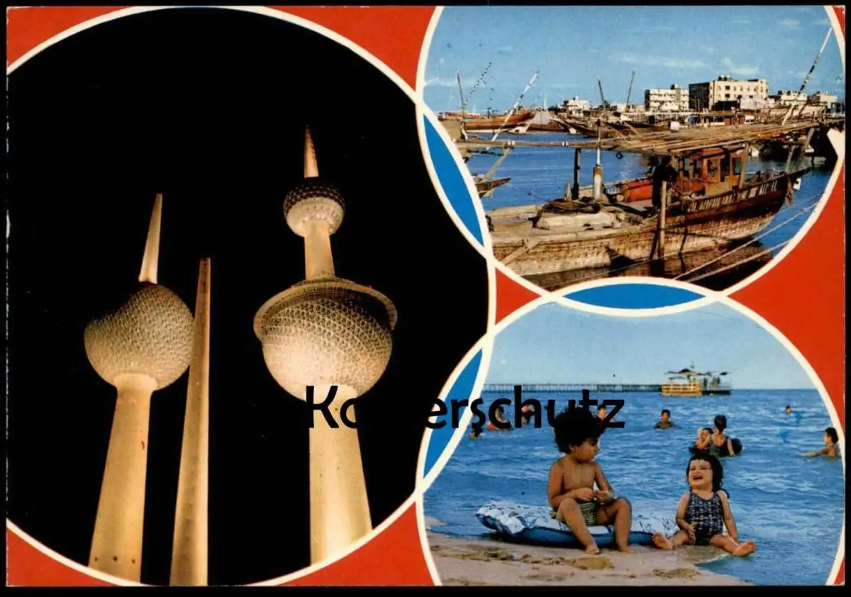 ÄLTERE POSTKARTE KUWAIT TOWERS BOATS SEA SIDE KUWEIT Tower beach plage Kinder children enfant Ansichtskarte cpa postcard