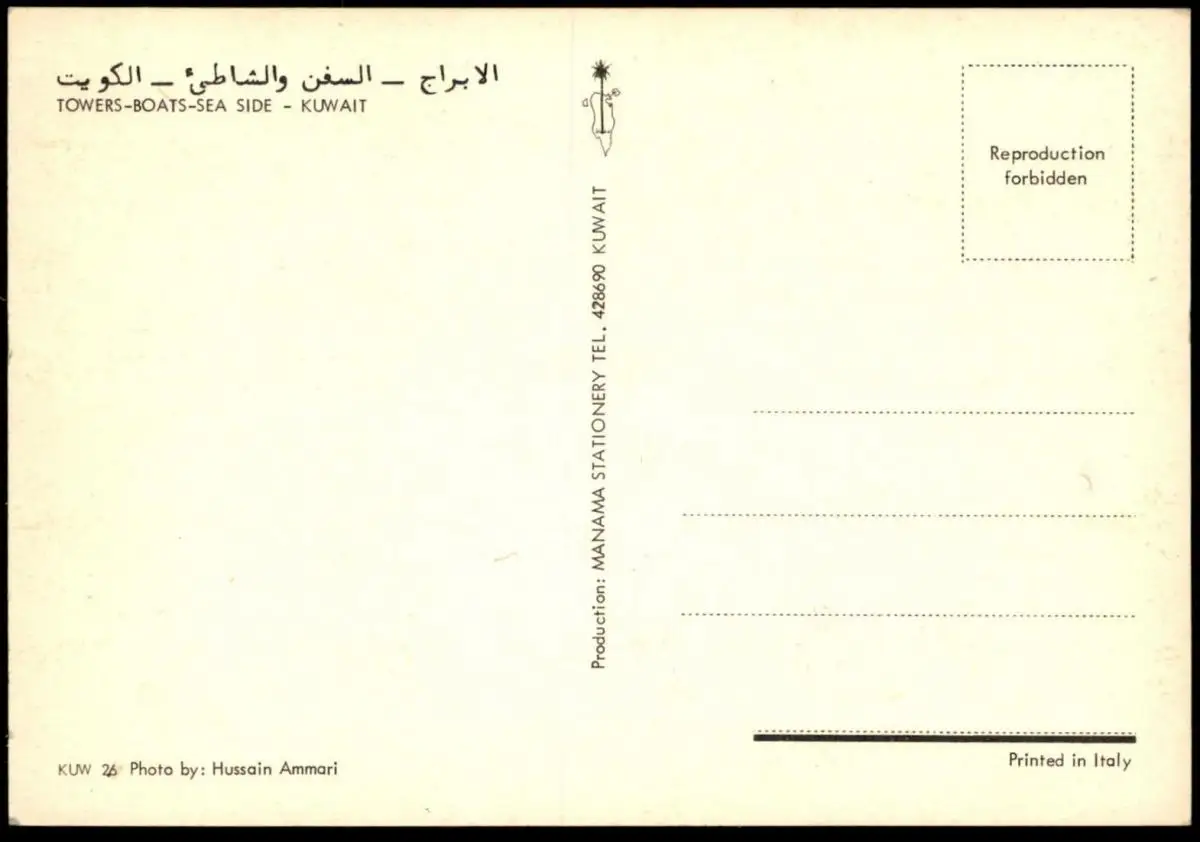 ÄLTERE POSTKARTE KUWAIT TOWERS BOATS SEA SIDEVerlag: Manama Stationery, Kuwait