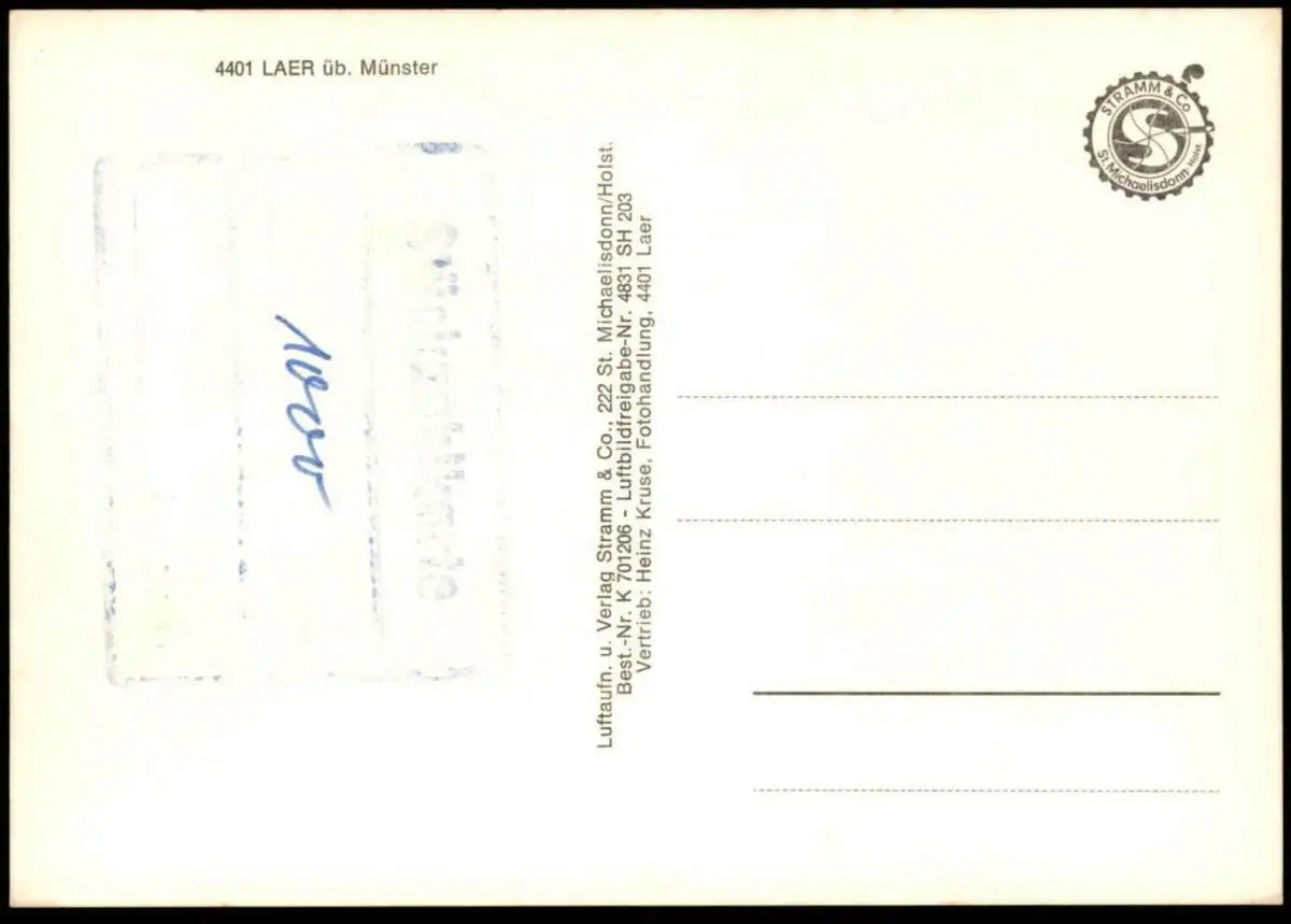 ÄLTERE POSTKARTE LAER BEI MÜNSTER FLIEGERAUFNAHME LUFTBILDVerlag: Stramm & Co., St. Michaelisdonn, Luftbildfreigabe Nr. 4831 SH203; Vertrieb Heinz Kruse, Laer