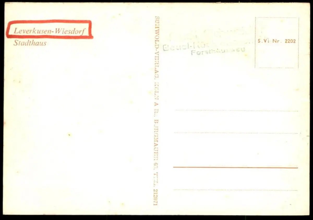 ÄLTERE POSTKARTE LEVERKUSEN WIESDORF STADTHAUSVerlag: Sühwold, KölnGelaufen: neinErhaltung (s. Scan): gut / 918617