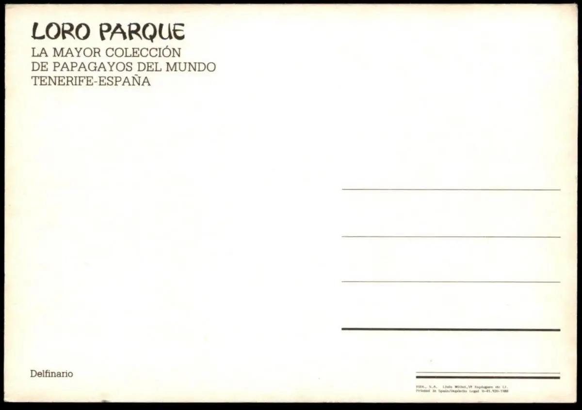 ÄLTERE POSTKARTE LORO PARQUE DELFINARIO TENERIFE ESPANA LA MAYOR COLECCIÓN DE PAPAGAYOS DEL MUNDO DELPHIN-SHOWVerlag: IGOL, Esplugues