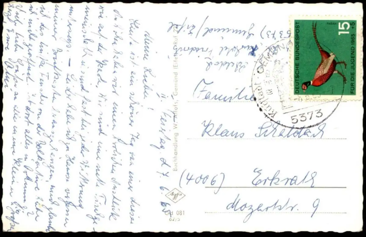 Gelaufen: 07.06.1965 mit Stempel Gemünd nach ErkrathErhaltung (s. Scan): gut / 915267