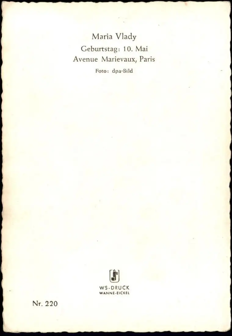 ÄLTERE POSTKARTE MARIA MARINA VLADY FILM-SCHAUSPIELERIN MEDAILLE AVENUE MARIEVAUX PARIS GEBURTSTAG 10. MAI Verlag: WS-Druck, Wanne-Eickel, Foto dpa-Bild