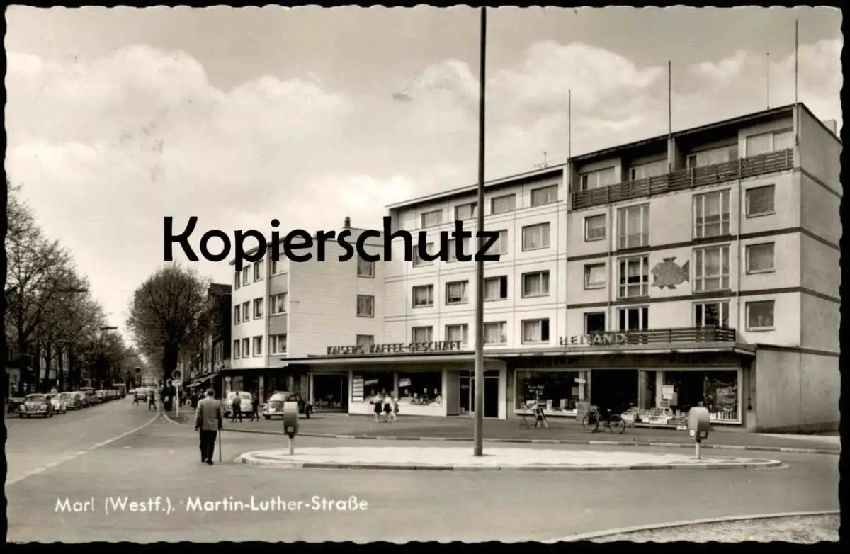 ÄLTERE POSTKARTE MARL MARTIN-LUTHER-STRASSE KAISERS KAFFEE GESCHÄFT HEILAND FISCH VW Volkswagen postcard Ansichtskarte