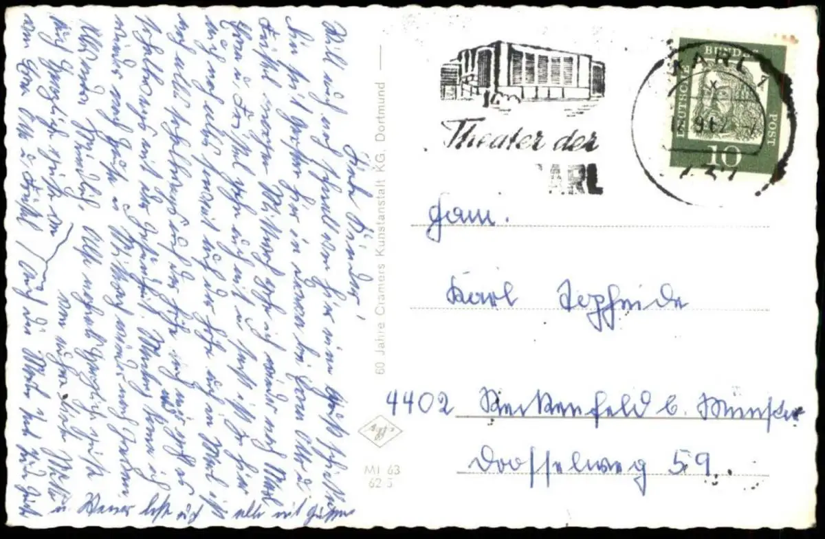 Gelaufen: 12.09.1962 mit Stempel Marl 1 nach ReckenfeldErhaltung (s. Scan): gut / 915652