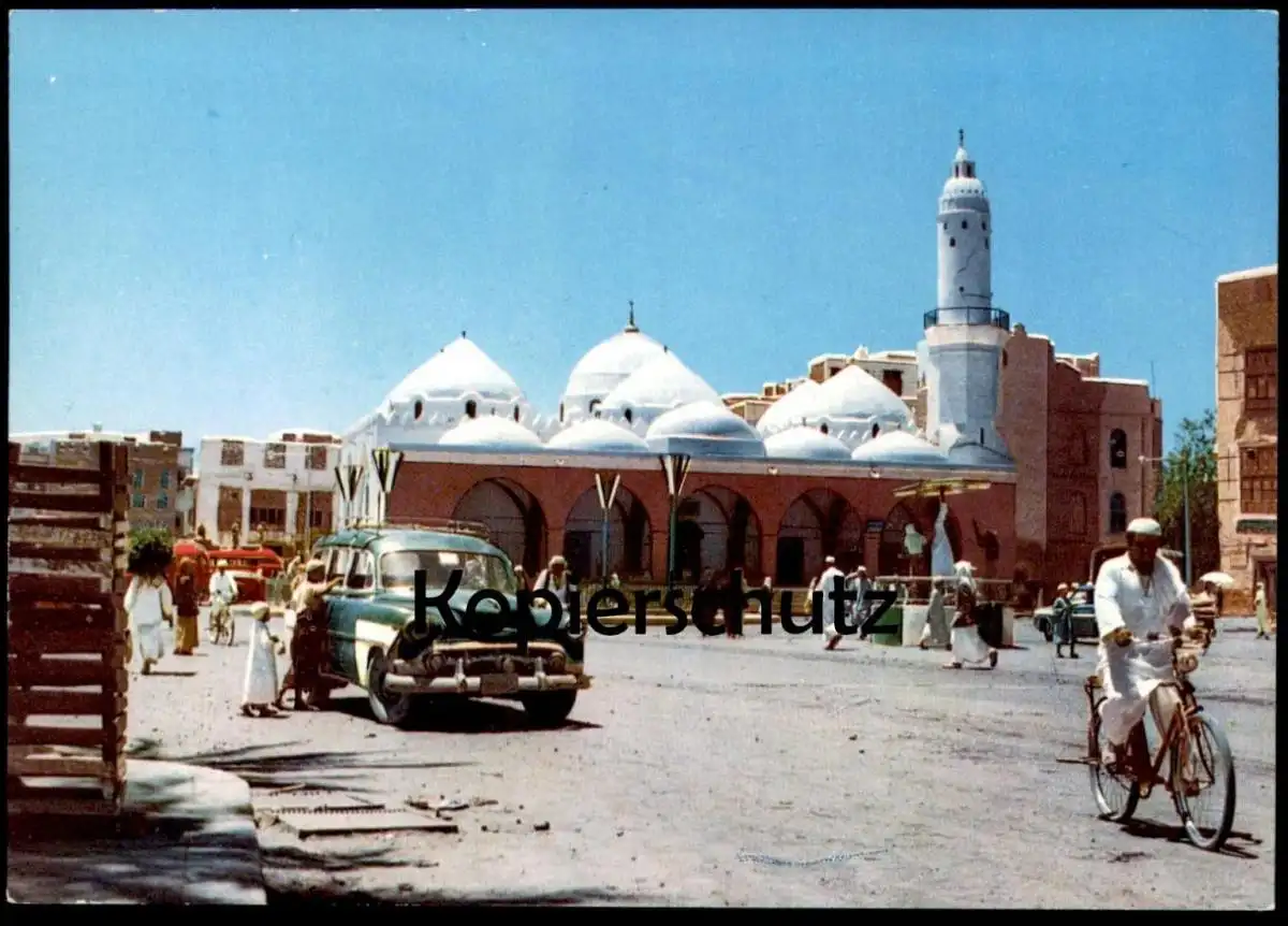 ÄLTERE POSTKARTE MASJID UQBAH MOSQUE MEDDINA MUNAWATAH MEDINA MOSCHEE CHEVROLET BEL AIR
