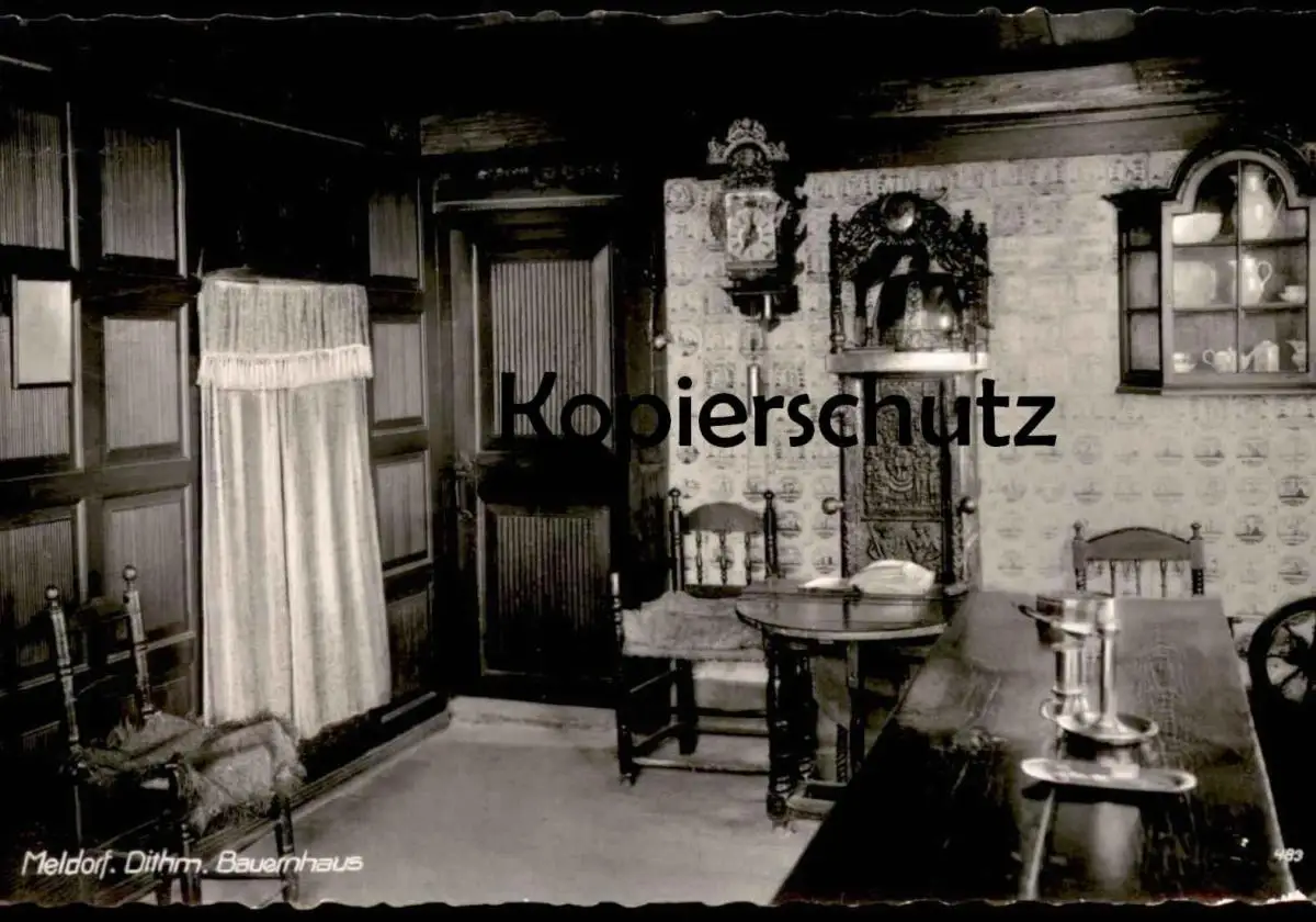 ÄLTERE POSTKARTE MELDORF BAUERNHAUS INNERES farm house ferme Kreis Dithmarschen Uhr clock pendule chrono cpa postcard AK