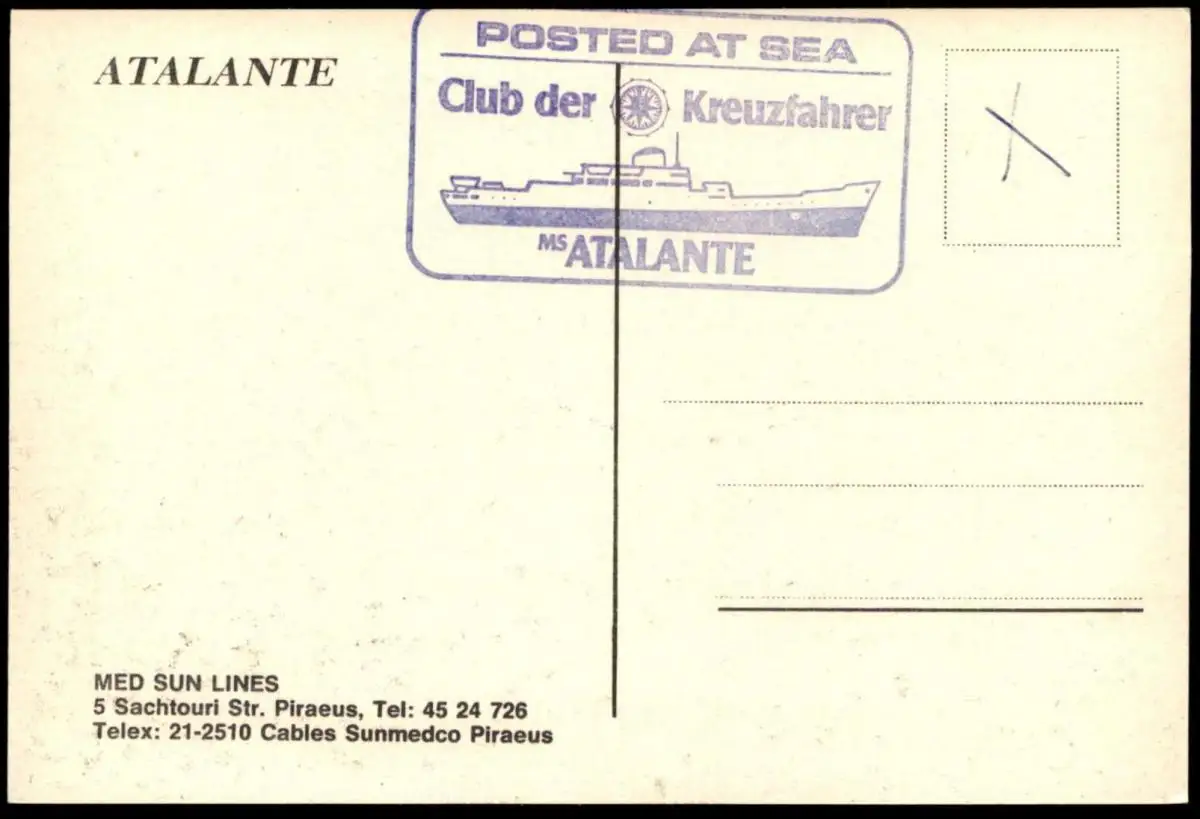 ÄLTERE POSTKARTE MS ATLANTE KREUZFAHRTSCHIFF CLUB DER KREUZFAHRER POSTED AT SEA MED SUN LINES ship bateau Ansichtskarte
