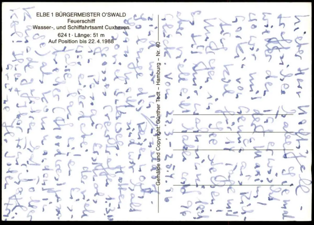 ÄLTERE POSTKARTE MS ELBE 1 BÜRGERMEISTER OSWALD FEUERSCHIFF WASSER- UND SCHIFFAHRTSAMT CUXHAVENVerlag: Gemälde Günther TodtGelaufen: nein, beschriebenErhaltung (s. Scan): gut - sehr gut / 918302