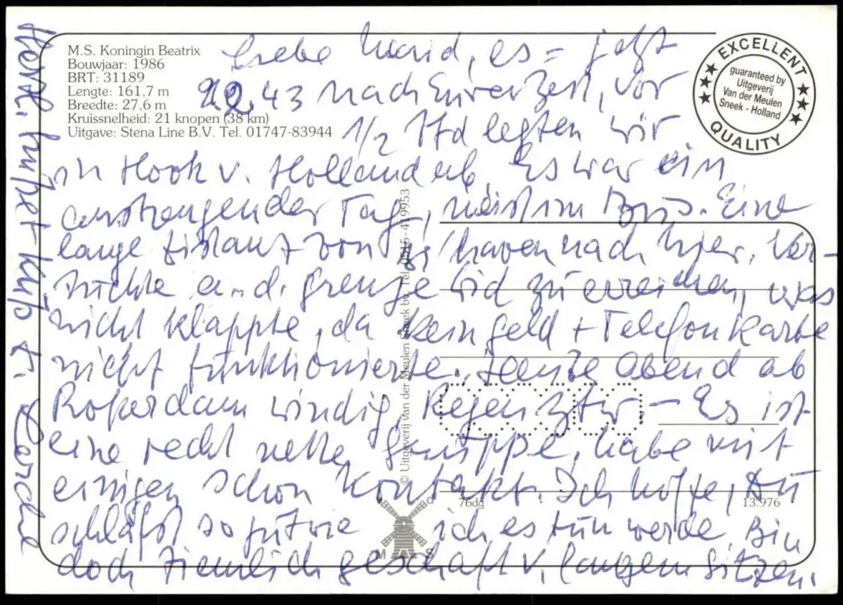 ÄLTERE POSTKARTE M.S. KONINGIN BEATRIX FÄHRSCHIFFVerlag: van der Meulen, Sneek