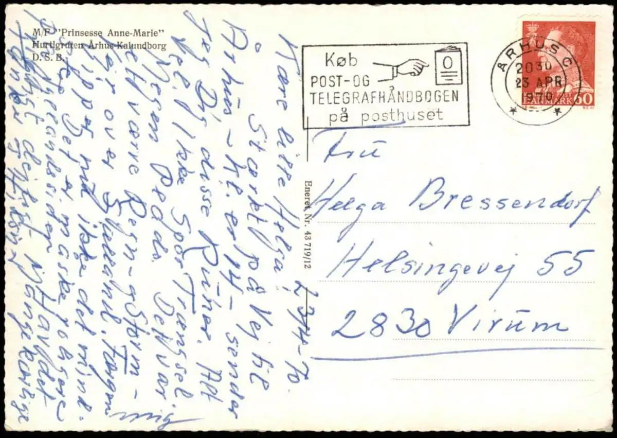 ÄLTERE POSTKARTE MS PRINSESSE ANNE-MARIE HURTIGRUTEN ARHUS KALUNDBORG Verlag: unbekanntGelaufen: 23.04.1970 mit Stempel Arhus nach Virum Erhaltung (s. Scan): mittel - schlechter, unten sowie mittig stärker bestoßen / 918832