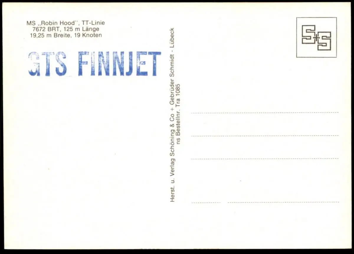 ÄLTERE POSTKARTE MS ROBIN HOOD FÄHRSCHIFF FÄHRE TT-LINIE GTS FINNJET Schiff Motorschiff postcard cpa AK Ansichtskarte