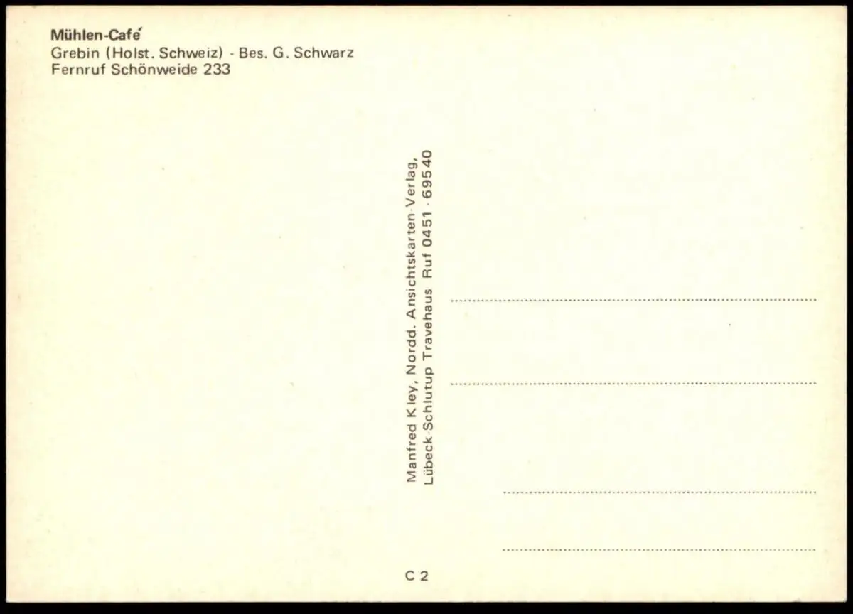 ÄLTERE POSTKARTE MÜHLEN-CAFÉ GREBIN HOLSTEINISCHE SCHWEIZVerlag: Kley, Lübeck