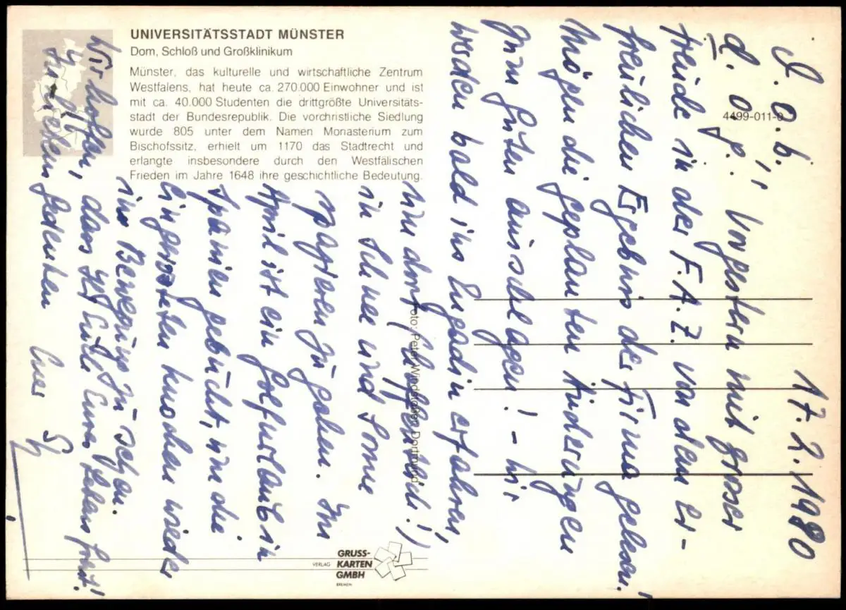 ÄLTERE POSTKARTE MÜNSTER DOM SCHLOSS UND GROSSKLINIKUM