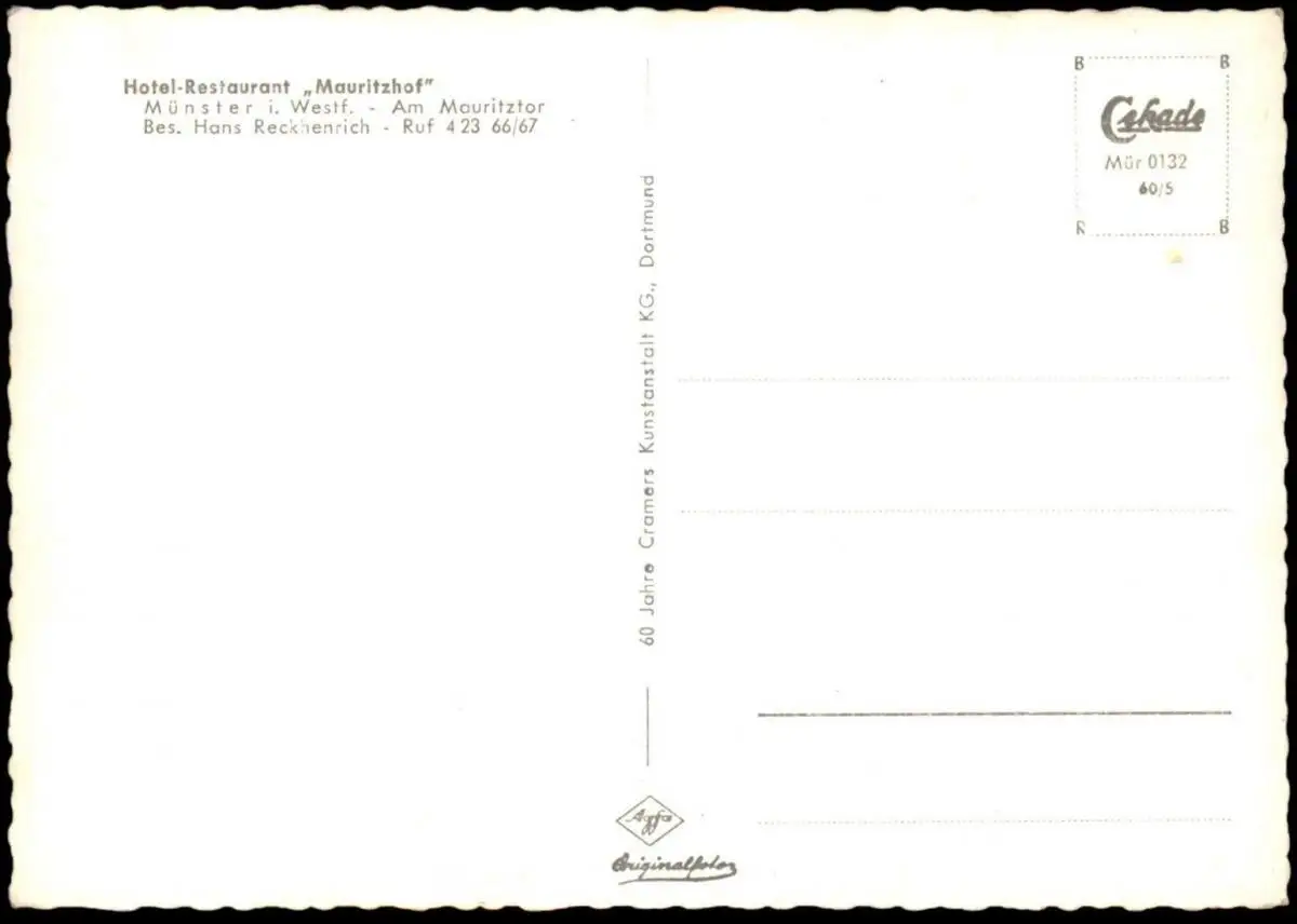 ÄLTERE POSTKARTE MÜNSTER WESTFALEN HOTEL RESTAURANT MAURITZHOF THEKE INH. RECKHENRICH Ansichtskarte postcard cpa AK