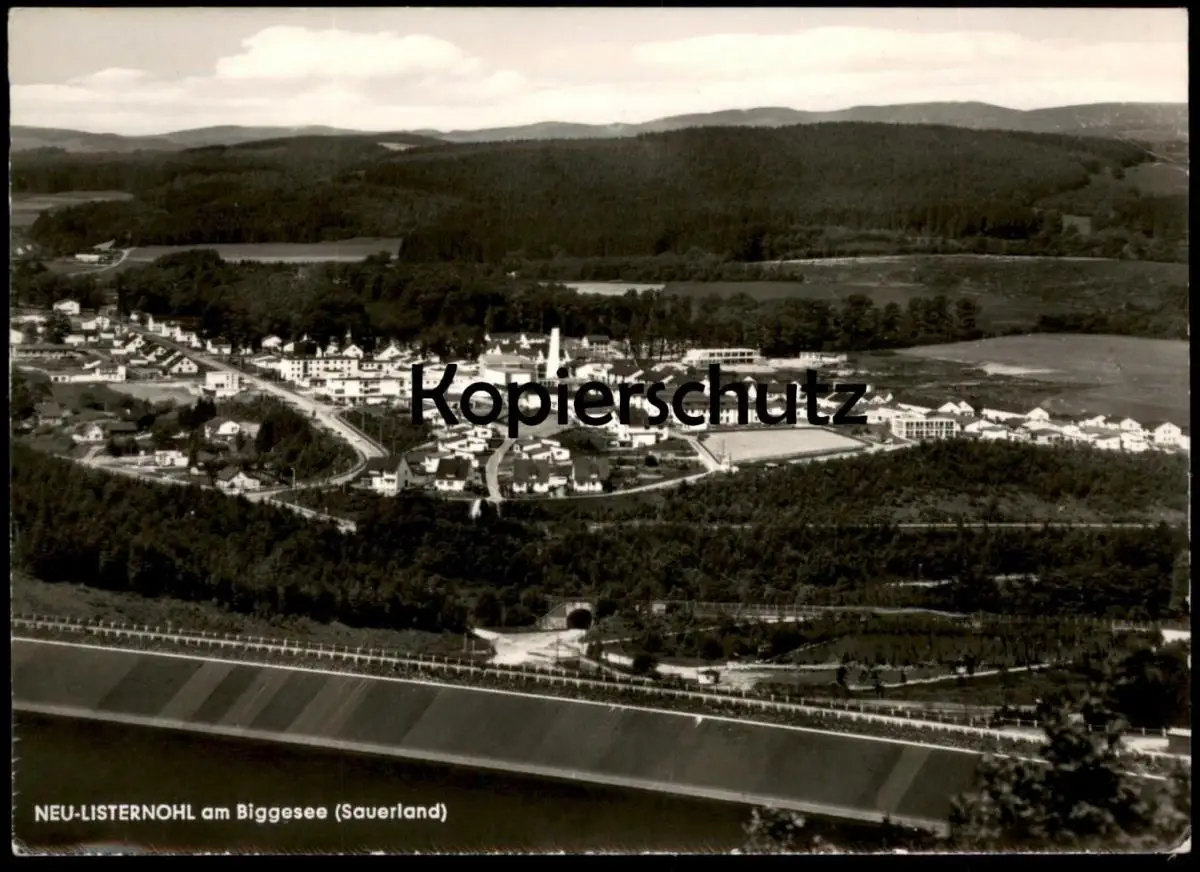 ÄLTERE POSTKARTE NEU-LISTERNOHL AM BIGGESEE ATTENDORN PANORAMA TOTALANSICHT