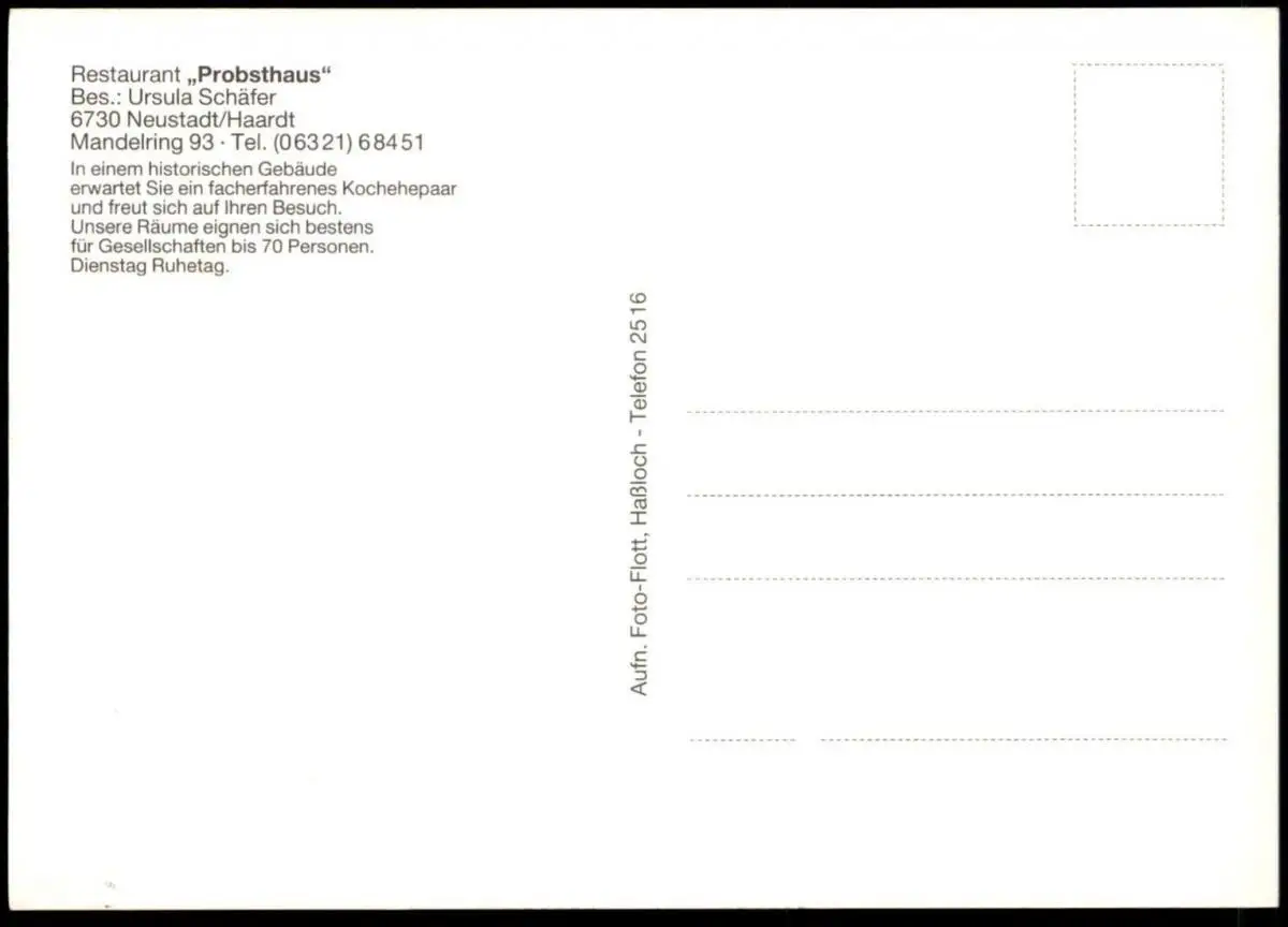 ÄLTERE POSTKARTE NEUSTADT AN DER HAARDT RESTAURANT PROBSTHAUS Ursula Schäfer Mandelring 93 Ansichtskarte postcard AK cpa