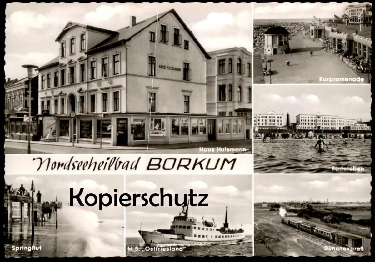 ÄLTERE POSTKARTE NORDSEEBAD BORKUM HAUS HUISMANN SPRINGFLUT M.S. Ostfriesland Badeleben Dünenexpress Ansichtskarte