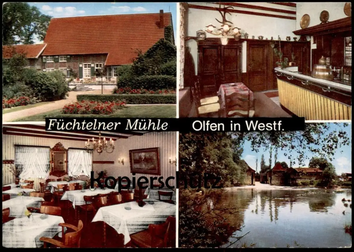 ÄLTERE POSTKARTE OLFEN IN WESTFALEN FÜCHTELNER MÜHLE BERNHARD MARKFORT SPIEGEL KRONLEUCHTER BAR Ansichtskarte postcard