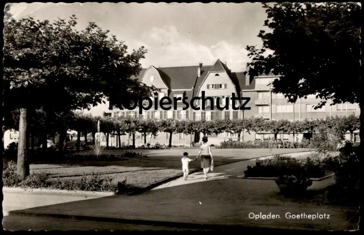 ÄLTERE POSTKARTE OPLADEN GOETHEPLATZ MUTTER HAND IN HAND MIT KIND child with mother Leverkusen Ansichtskarte AK postcard