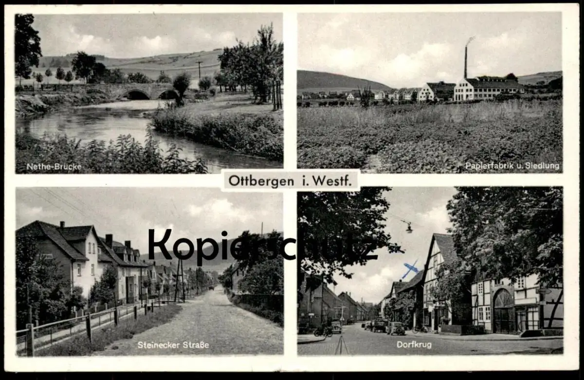ÄLTERE POSTKARTE OTTBERGEN IN WESTFALEN PAPIERFABRIK UND SIEDLUNG NETHE-BRÜCKE STEINECKER STRASSE DORFKRUGVerlag: Josef Köhler, Ottbergen