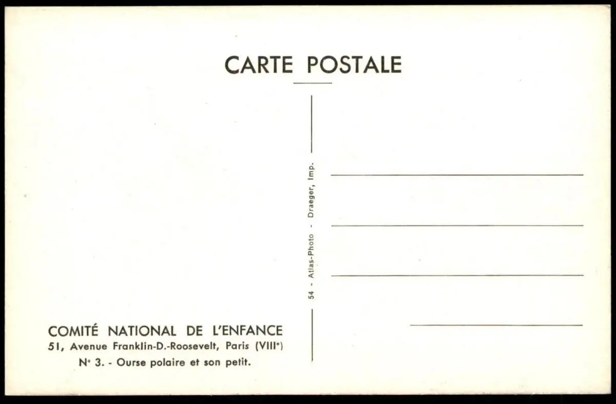 ÄLTERE POSTKARTE OURSE POLAIRE ET SON PETIT EISBÄR Bär blanc ice polar bear Comité National de l'enfance postcard cpa AK