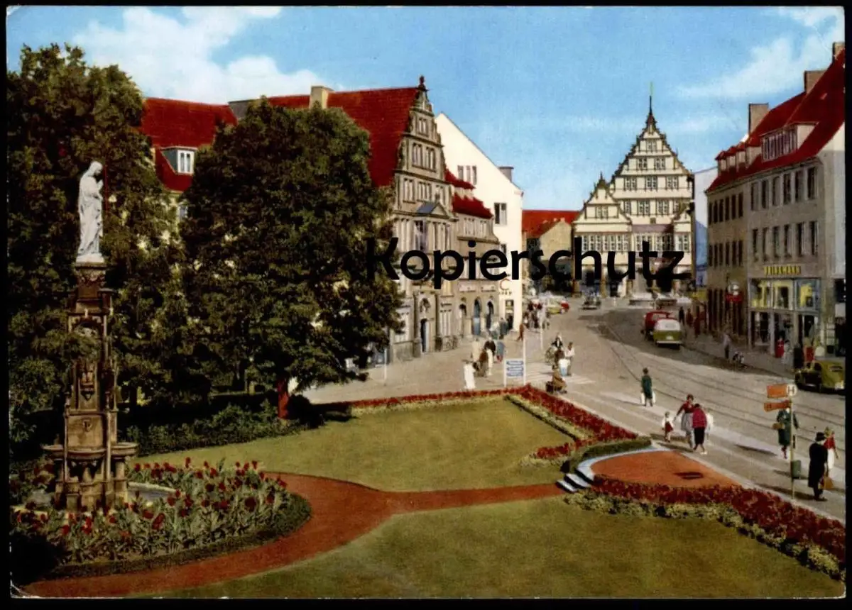 ÄLTERE POSTKARTE PADERBORN MARIENPLATZ Statue monument Volkswagen Bus Volkswagen Käfer Kever Ansichtskarte postcard cpa