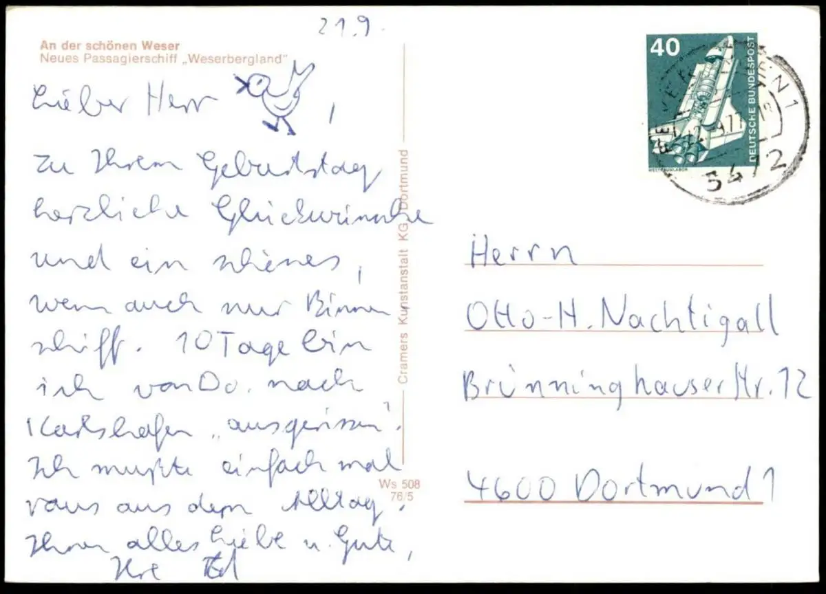 Gelaufen: 21.09.1977 mit Stempel Karlshafen nach DortmundErhaltung (s. Scan): gut, rechts oben minimal bestoßen / 915220