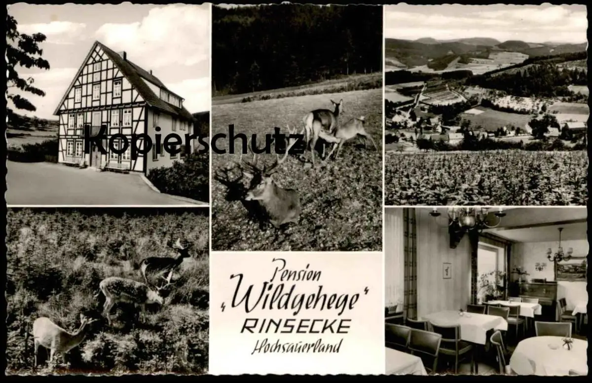 ÄLTERE POSTKARTE PENSION WILDGEHEGE RINSECKE HOCHSAUERLAND Kirchundem Hirsch Reh deer cerf Sauerland Ansichtskarte cpa