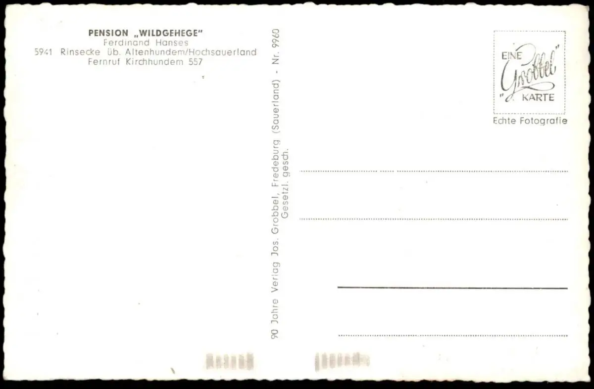 ÄLTE RE POSTKARTE PENSION WILDGEHEGE RINSECKE HOCHSAUERLANDVerlag: Jos. Grobbel, FredeburgGelaufen: neinErhaltung (s. Scan): gut / 915241