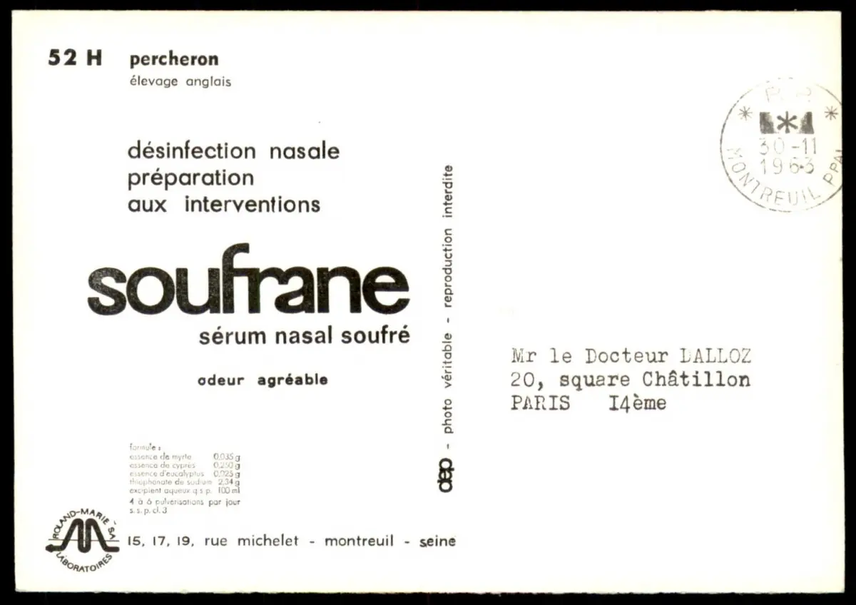 Gelaufen: 30.11.1963 mit Stempel Montreuil nach Paris