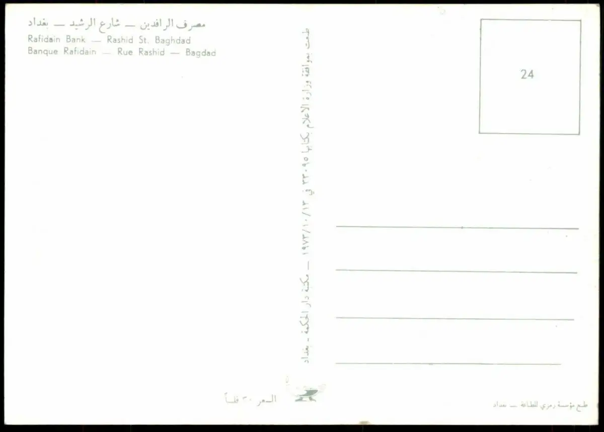 ÄLTERE POSTKARTE BAGHDAD RAFIDAIN BANK RASHID STREET