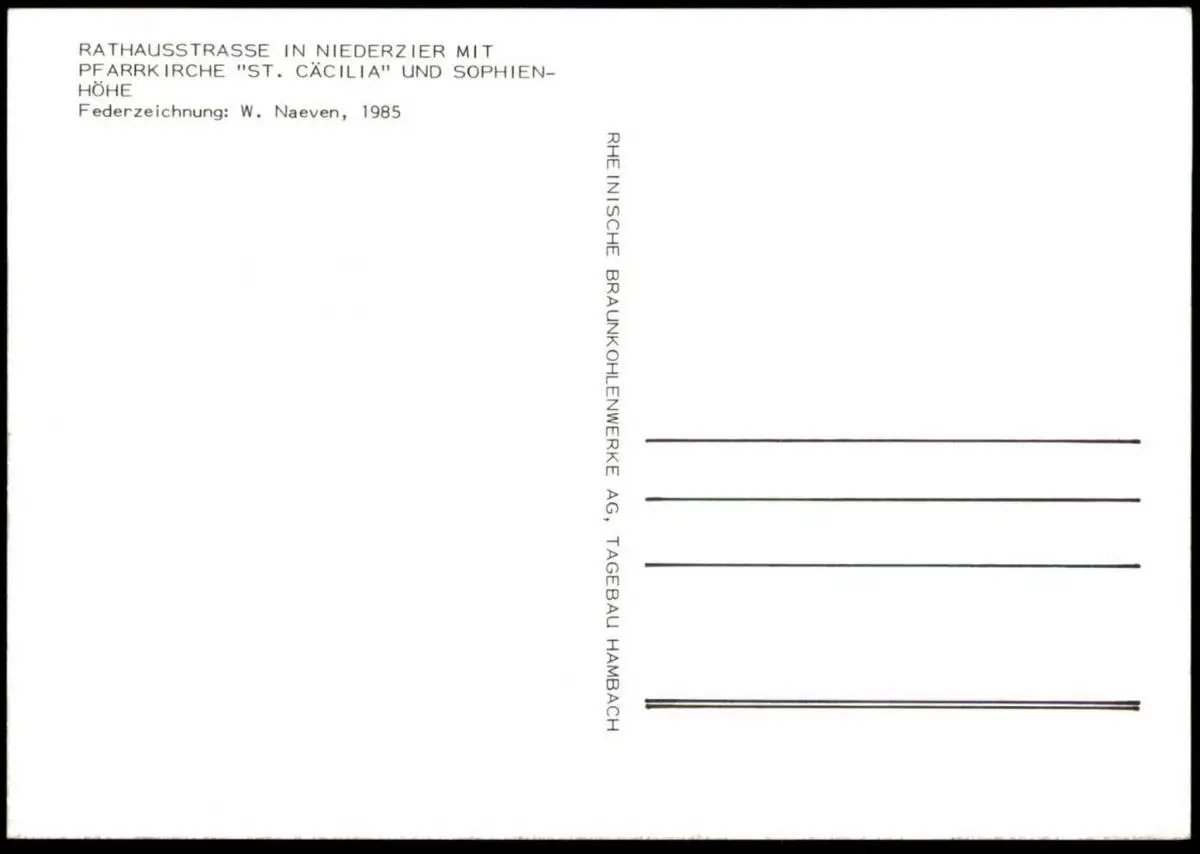 ÄLTERE POSTKARTE RATHAUSSTRASSE IN NIEDERZIER ST. CÄCILIA UND SOPHIENHÖHEVerlag: Rheinische Braunkohlenwerke AG Tagebau Hambach