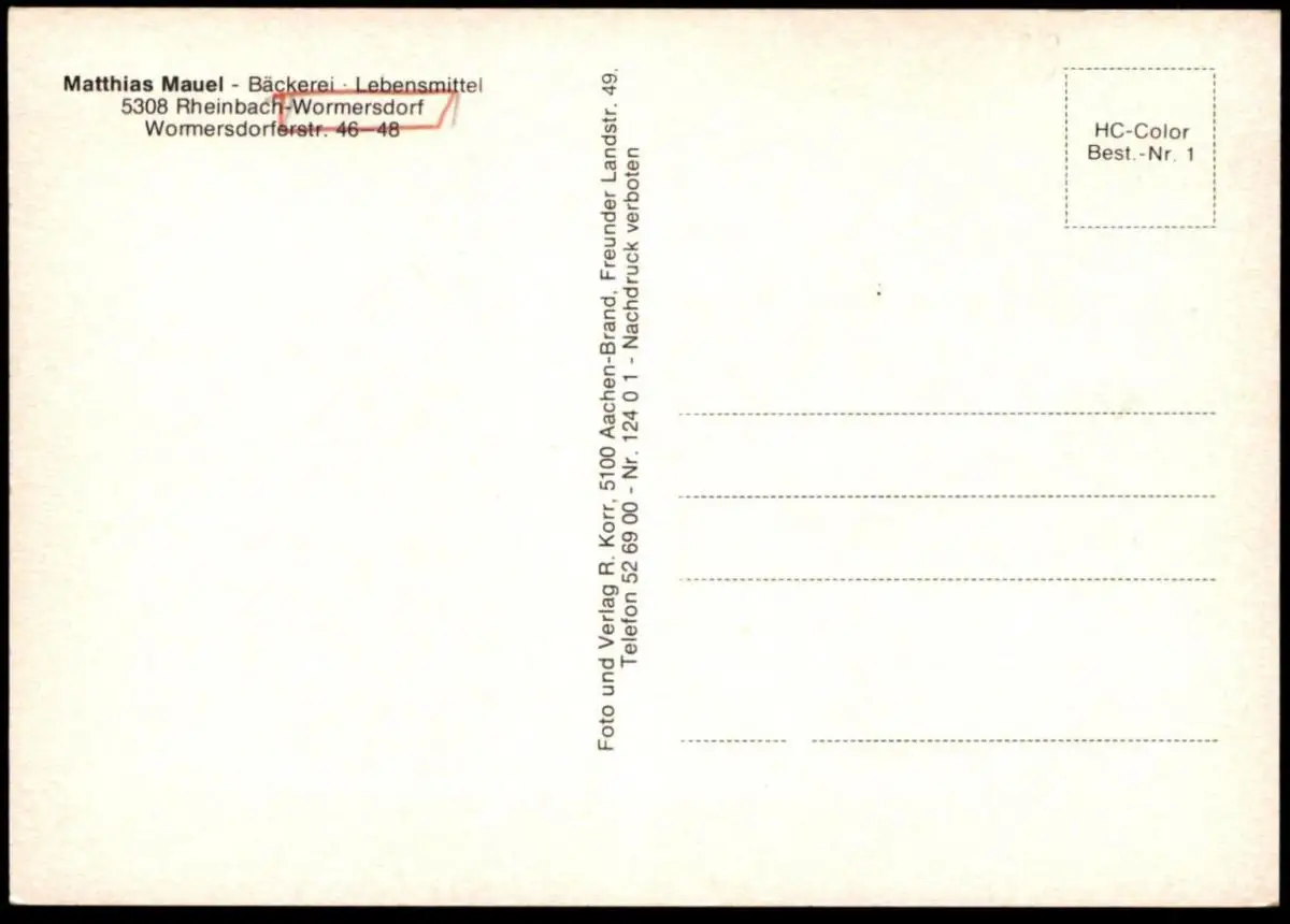 ÄLTERE POSTKARTE RHEINBACH-WORMERSDORF TCHIBO BACKSTUBE KREISSPARKASSE