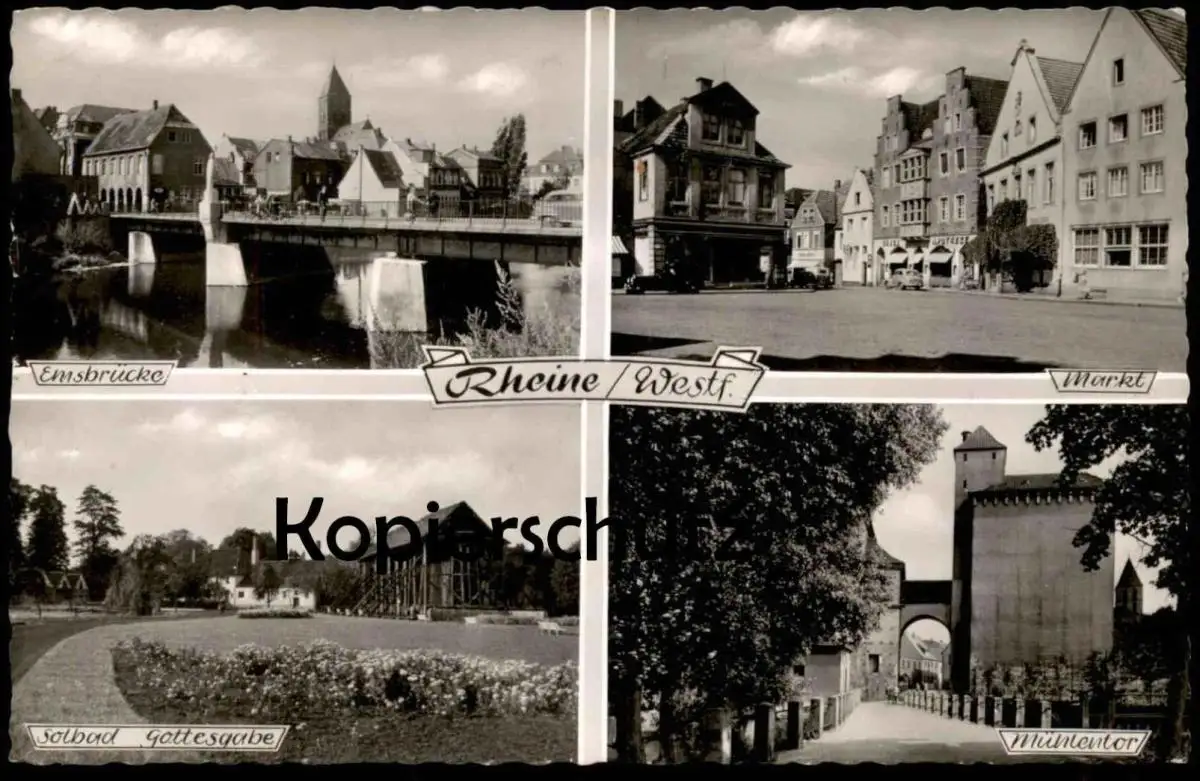 ÄLTERE POSTKARTE RHEINE EMSBRÜCKE MARKT MÜHLENTOR SOLBAD GOTTESGABEVerlag: Cramers, Dortmund