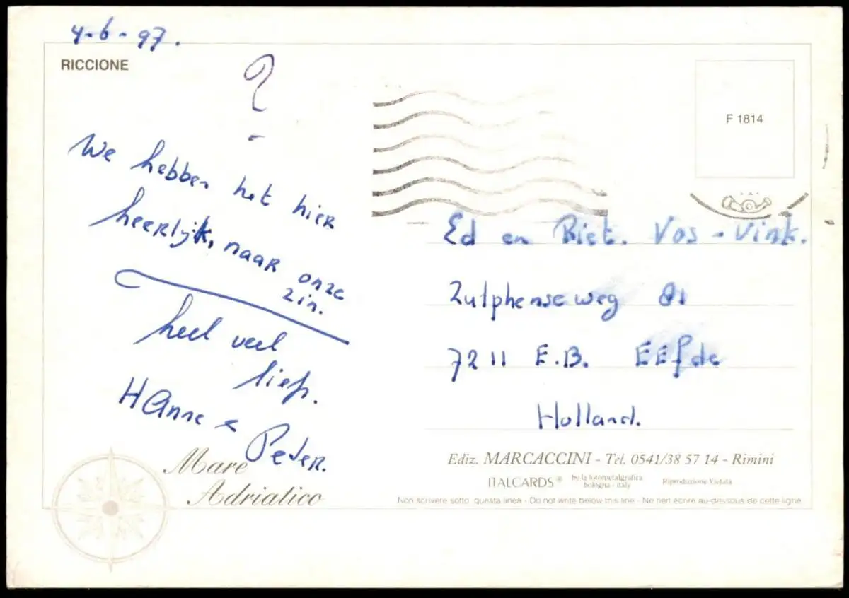 Gelaufen: 04.06.1997 nach Eefde, Holland, Briefmarke (sauber) entferntErhaltung (s. Scan): gut - mittel, untere Ecken leicht bestoßen / 917938
