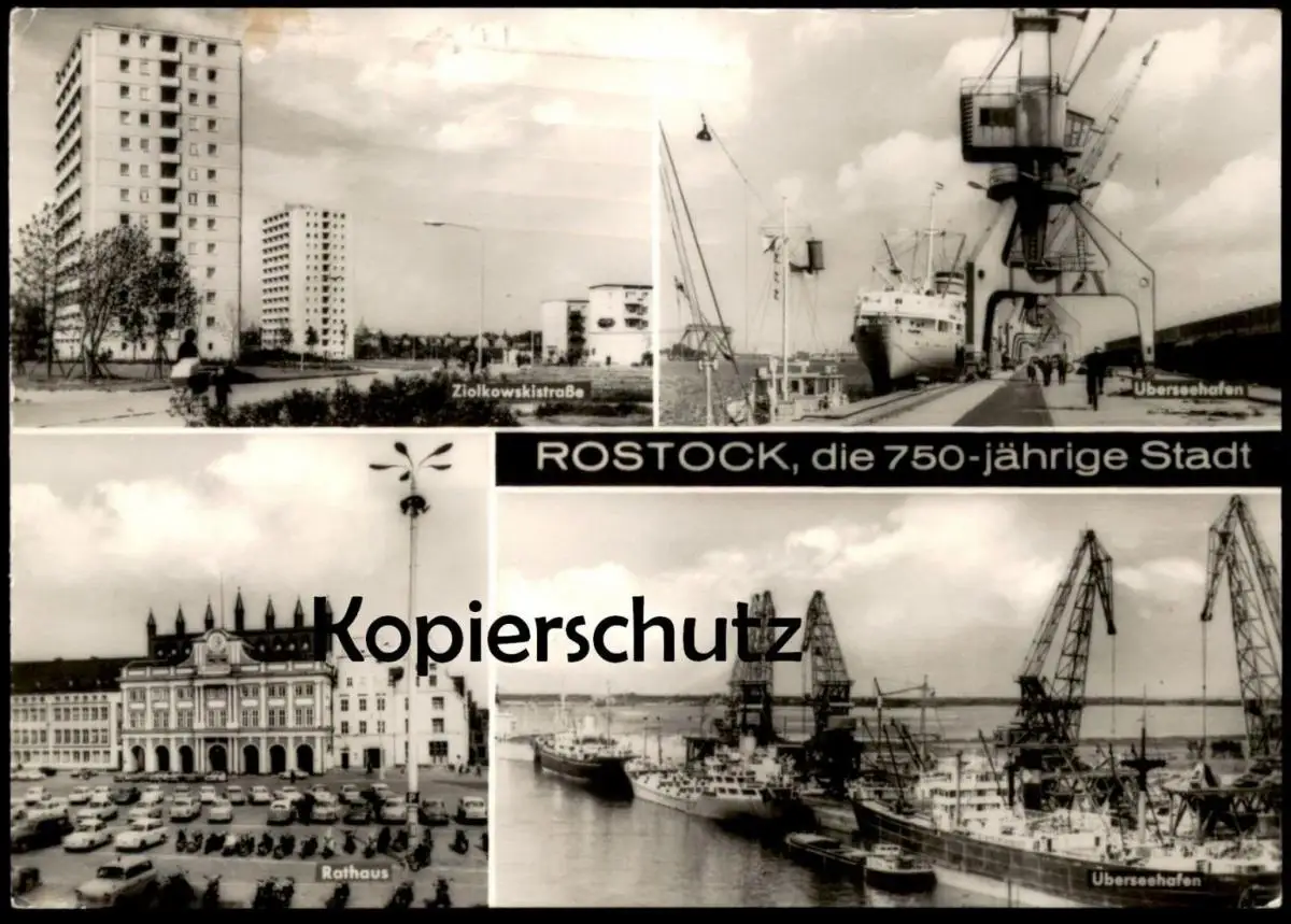 ÄLTERE POSTKARTE ROSTOCK DIE 750-JÄHRIGE STADT ZIOLKOWSKISTRASSE ÜBERSEEHAFEN KRÄNE SCHIFF RATHAUS Verlag: VEB Bild und Heimat, Reichenbach
