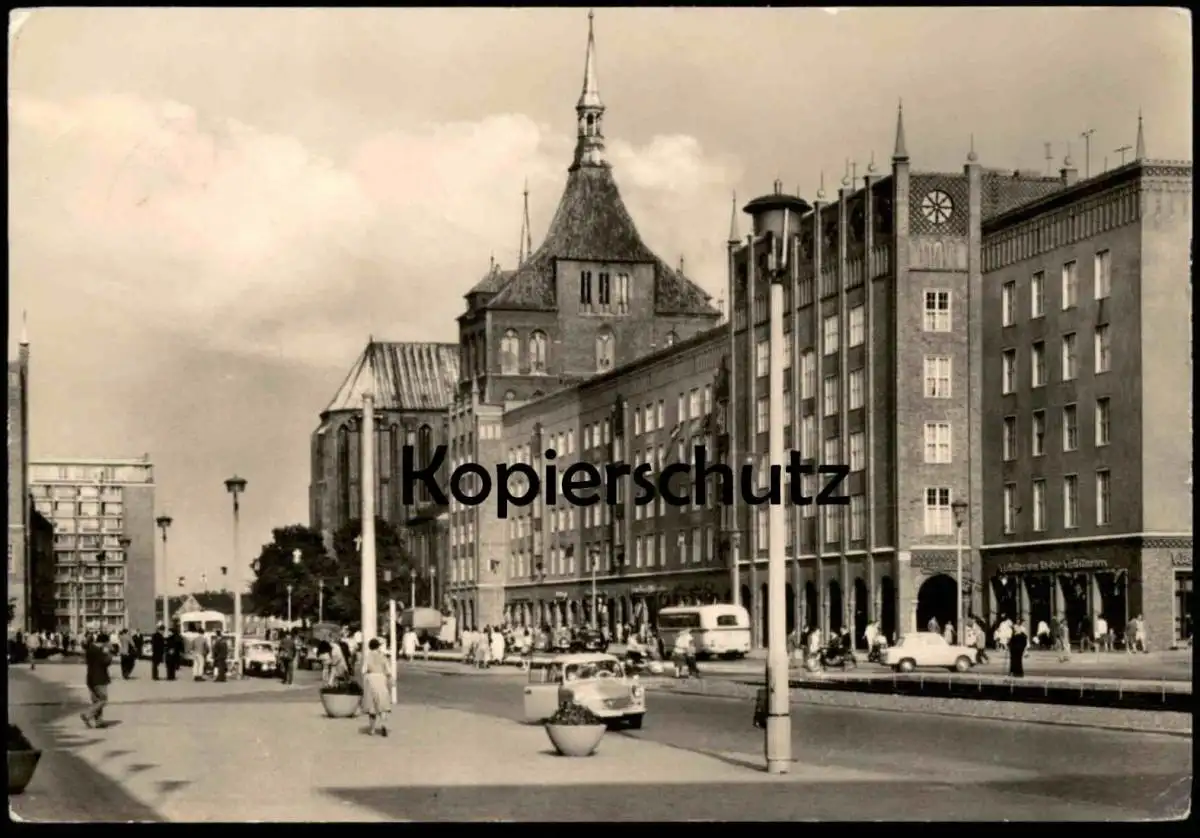 ÄLTERE POSTKARTE ROSTOCK MARIENKIRCHE MIT LANGER STRASSE Autos Auto VerkehrVerlag: VEB Bild und Heimat, Reichenbach