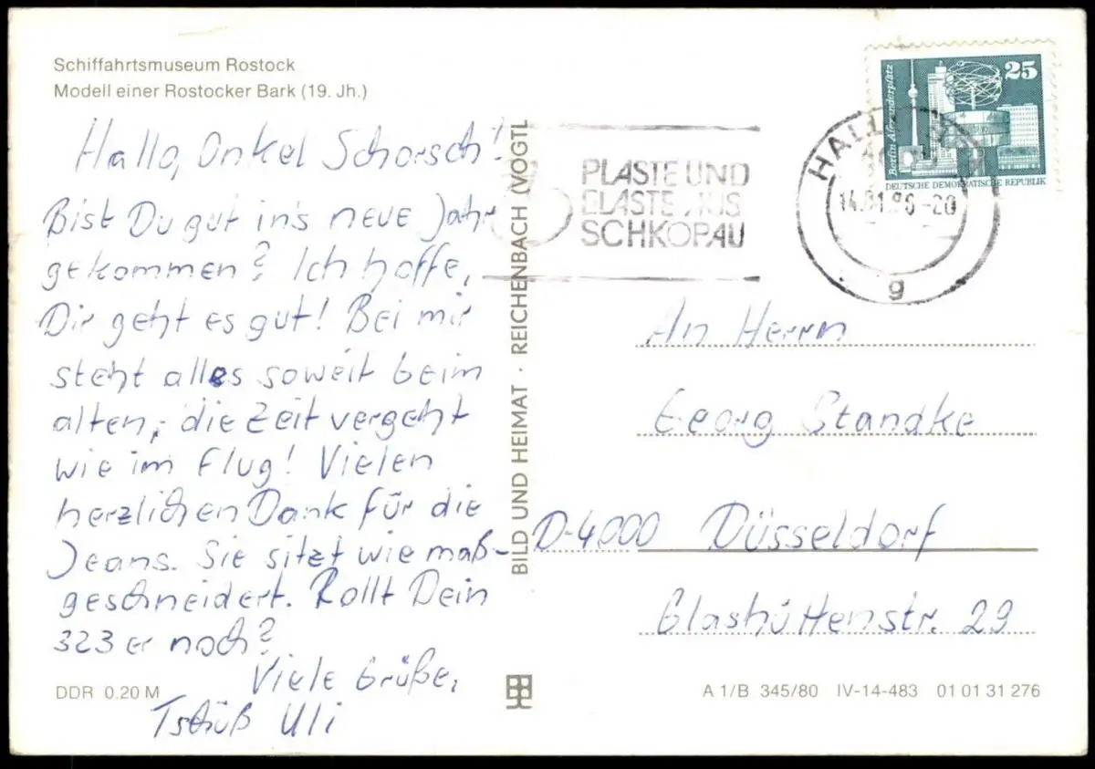 Gelaufen: 14.01.1980 mit Stempel Halle nach DüsseldorfErhaltung (s. Scan): schlechter, rechte Ecke geknickt / 916421