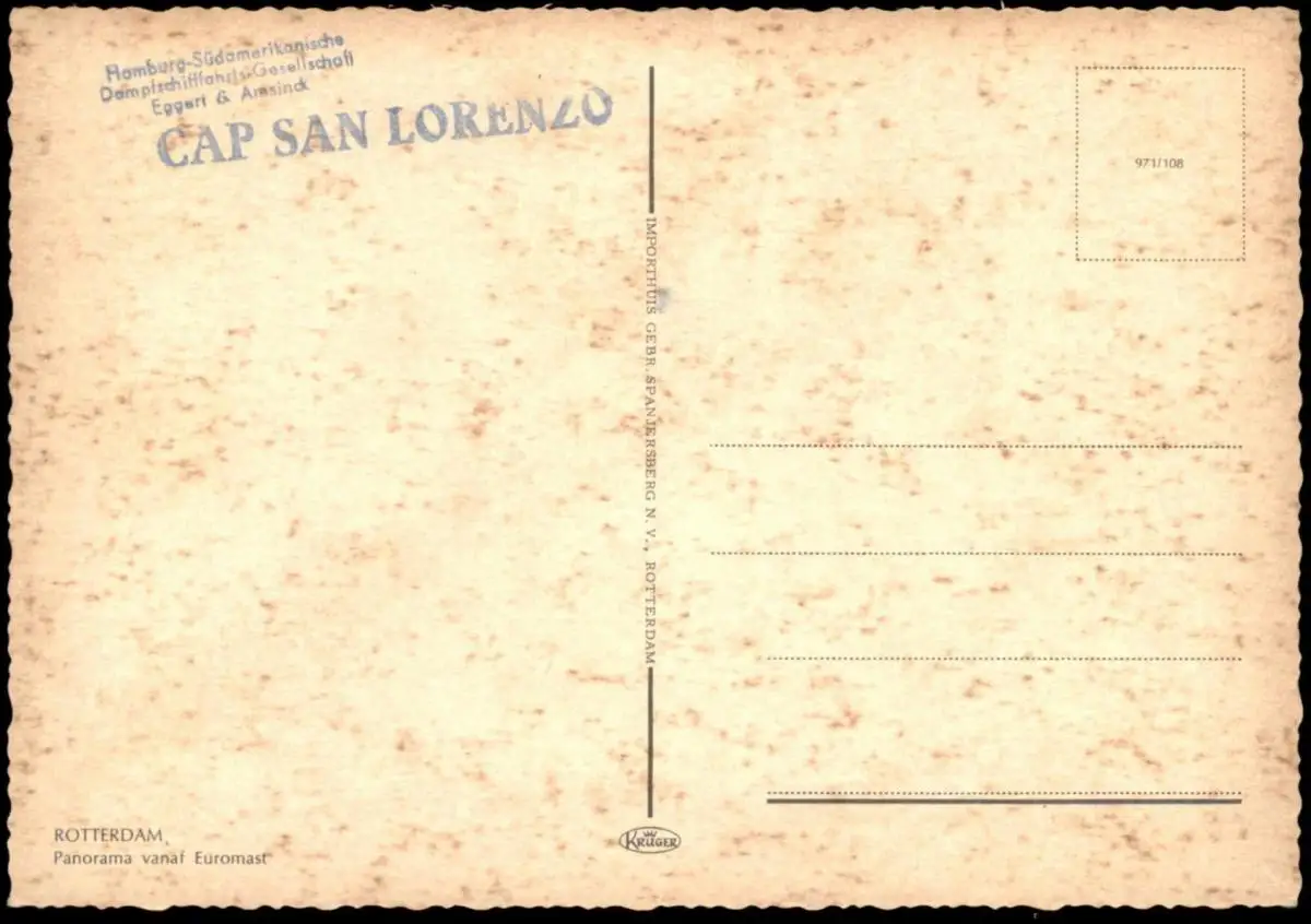 Gelaufen: nein, Stempel Schiff Hamburg Südamerikanische Dampfschifffahrtsgesellschaft Eggert & Amsinck CAP SAN LORENZO