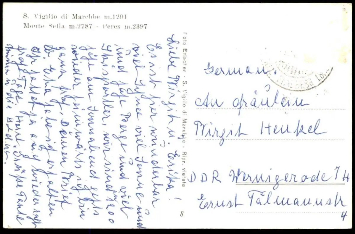 Verlag: Foto Erlacher, S. Vigilio di MarebbeGelaufen: xx.xx.19xx nach Wernigerode, Briefmarke (sauber) entferntErhaltung (s. Scan): gut - mittel, an kleiner Stelle minimale Verfärbung / 917619