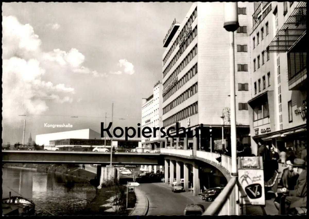 ÄLTERE POSTKARTE SAARBRÜCKEN BERLINER PROMENADE KONGRESSHALLE REKLAME TRINK V3 Ansichtskarte AK cpa postcard