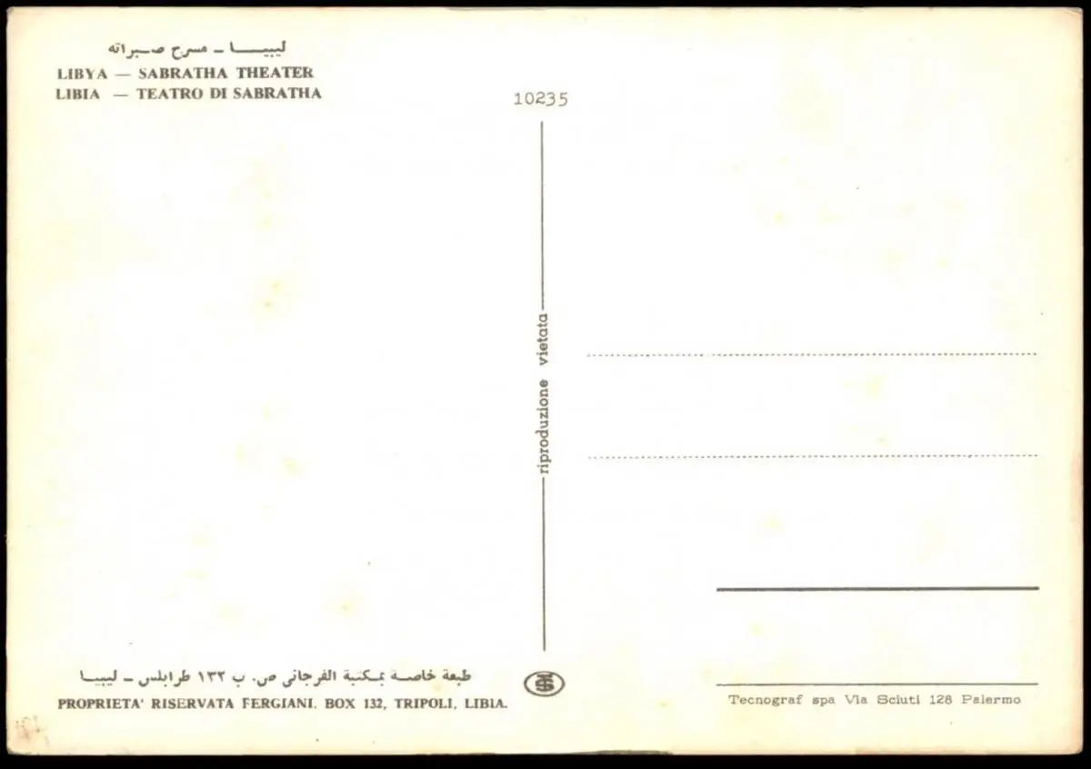 ÄLTERE POSTKARTE SABRATHA THEATER ANTIQUITIES LIBYAVerlag: Tecnograf, Palermo